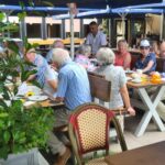 Vom Lokal wurden für uns einige Tische unter den Sonnenschirmen reserviert und wir konnten ein fröhliches Beisammensein miteinander genießen. Einzig die aufdringlichen Wespen, welche es leider überall im Freien gibt, mussten permanent vertrieben werden. Der angebotene Kaffee und Kuchen schmeckte und danach gönnten sich einige Teilnehmer noch etwas schmackhaftes zum Abendessen. Die ungewohnt hohen Temperaturen hielten leider einige unserer hochbetagten Senioren vom Kommen ab, aber wir freuen uns dann auf ein Wiedersehen bei der nächsten Tagesfahrt in den Odenwald am 16.08.2022.